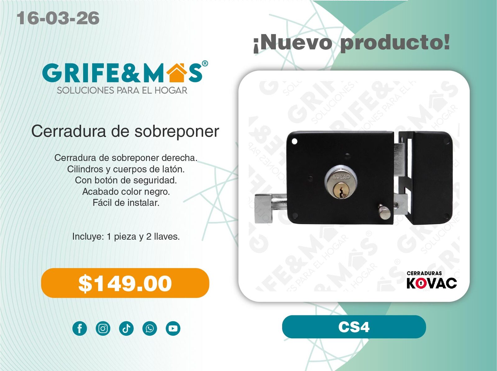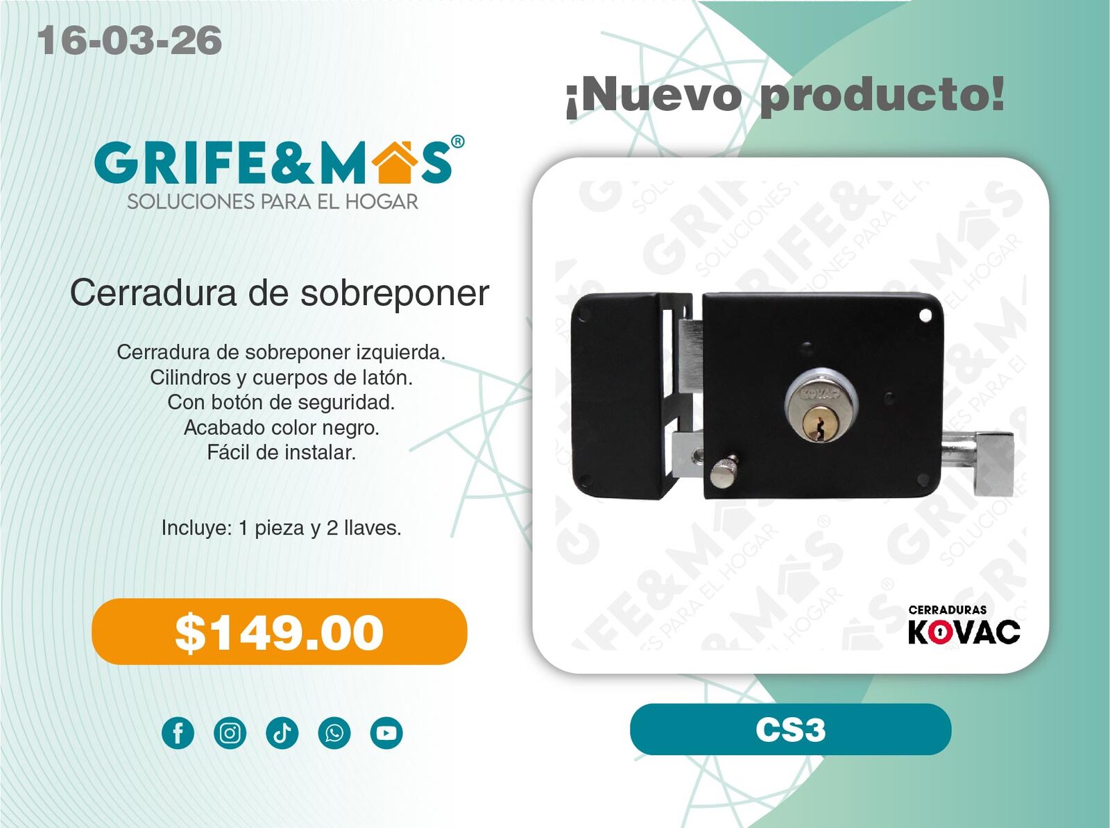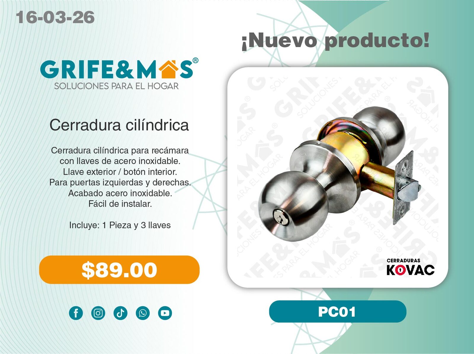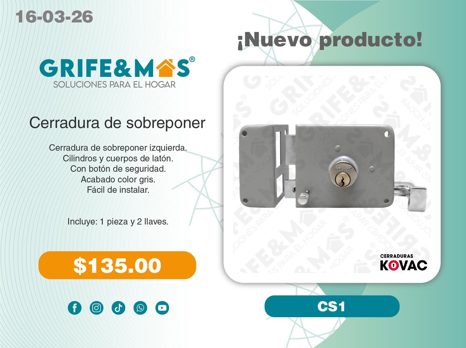 1 Tarja de 80 Cms calibre 22 (Escurridor derecho).