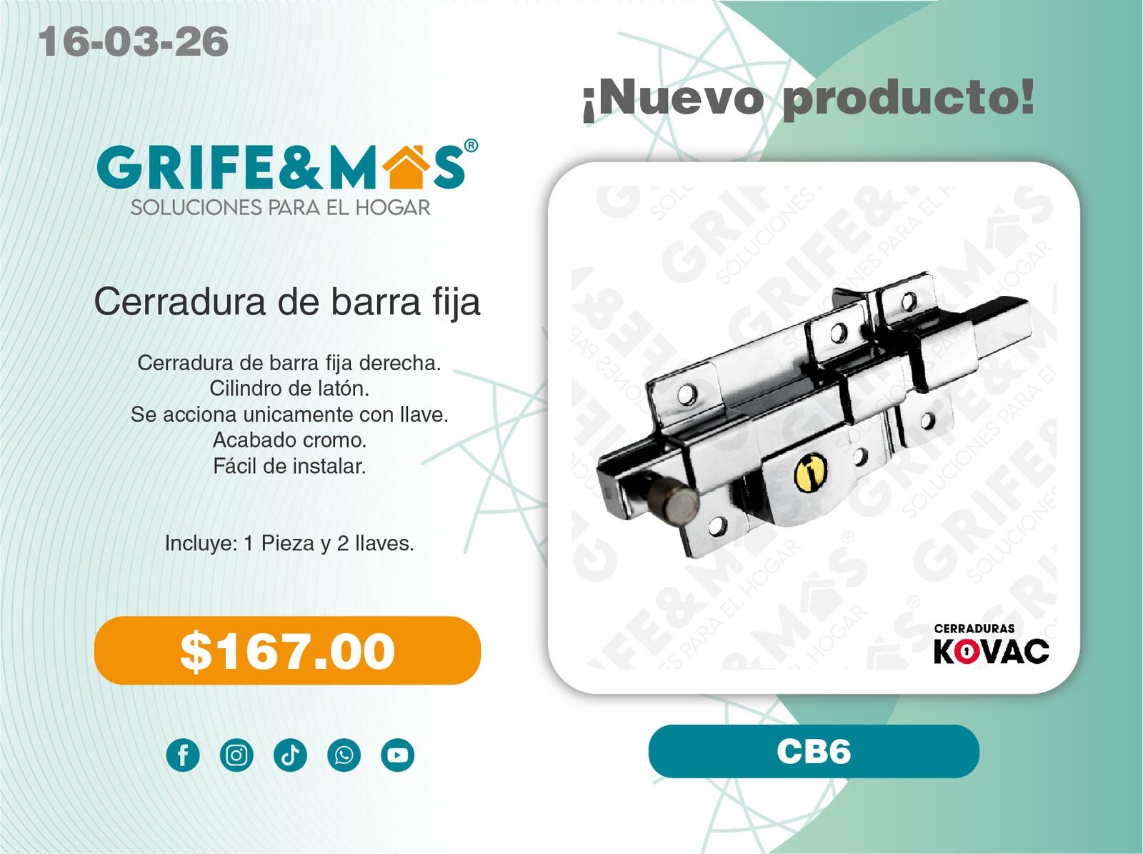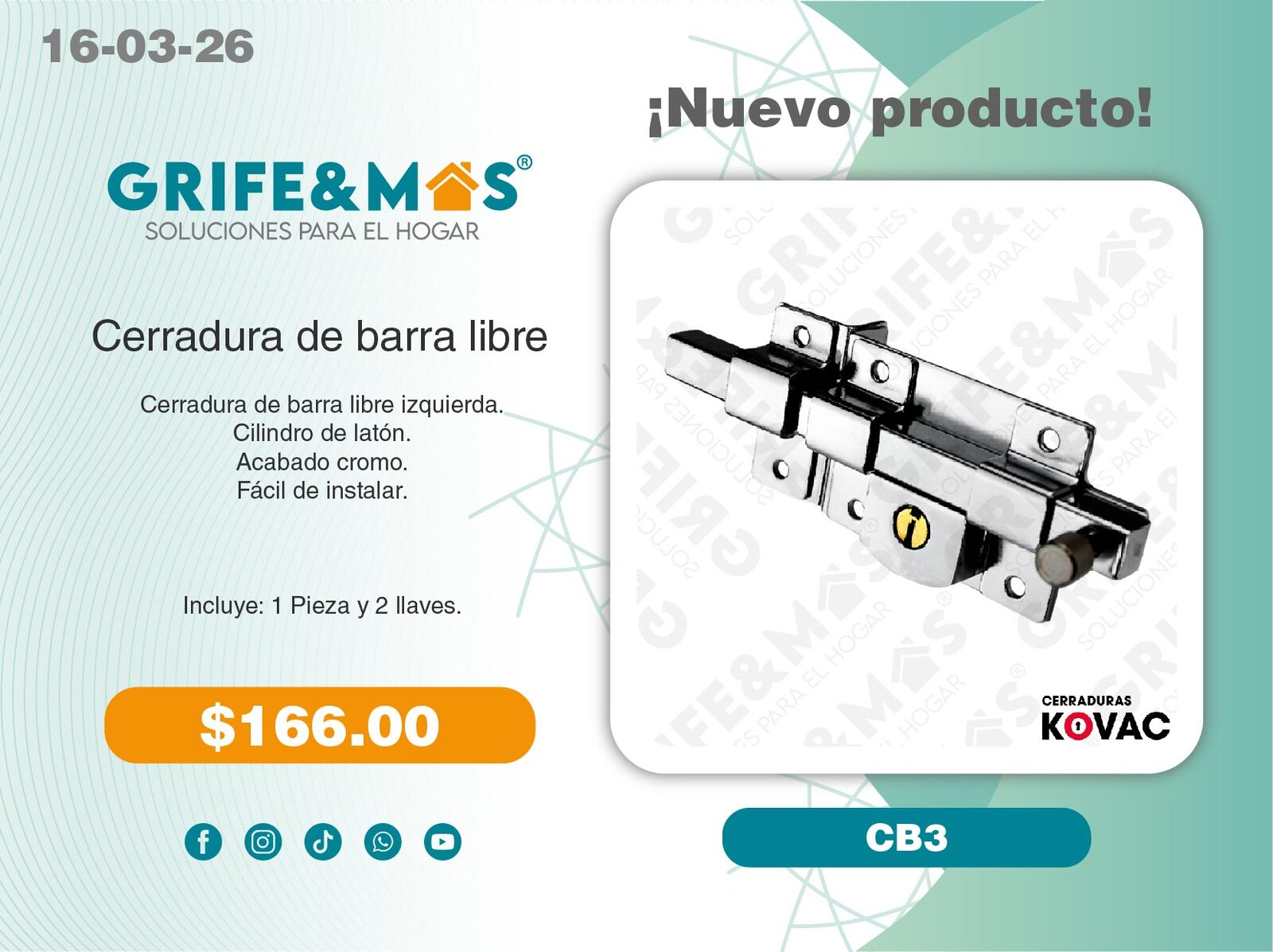 1 Tarja de 1 MT calibre 22 (Escurridor derecho).